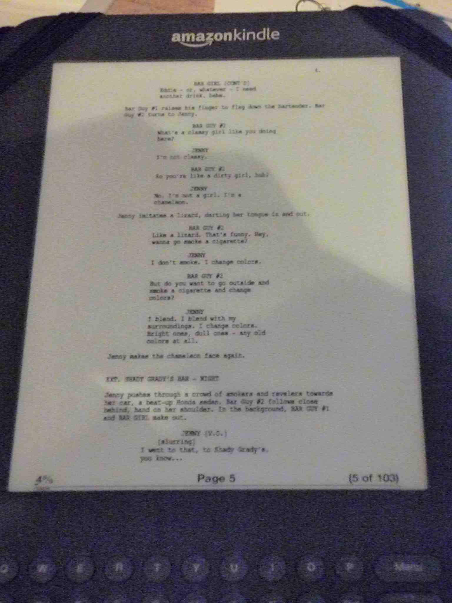 I think this is the issue with the concept overall - In dealing with a PDF, the Kindle (and I imagine most readers of the ilk) will expand the text of a given page as far as the margins or "dead" space will allow. In other words, if dealing with a screenplay and center-justified "dialogue" text with no left-justified descriptive text, it will expand the size of that text greatly and on the next page, if there is left-justified text, go back to a smaller size.