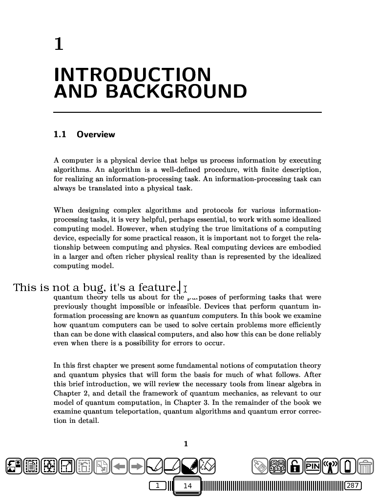 ipdf behaves a bit odd again. The typed text is visible all the time, but the window of beaver disappear when you flip page, you have to click with stylus on the area where the window of beaver lives to see the window again. Screenshot is attached showing the hidden beaver dialog window in ipdf. "This is not a bug, it's a feature." is typed text in beaver. Yes, it does work with hudson's keyboard server. |