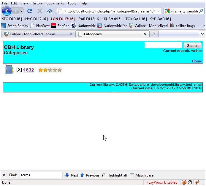 Well, after having my one user hassle me incessantly (aren't users wonderful to have?), the PHP-based calibre server is getting there. The user is now using it 'in production' successfully. It has been used on a nook, on Opera on my WM6.5 phone, and on Firefox & IE. Some screen shots are attached. Note that the library I was using is my test library, so the metadata for the books has been 'messed with'.