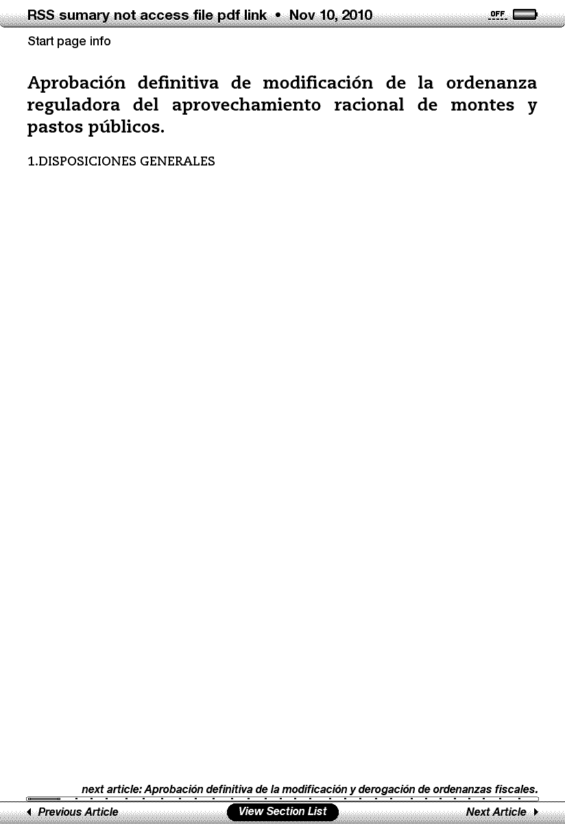 http://www.gobcantabria.es/rss/fichero94.xml http://www.gobcantabria.es/rss/fichero93.xml not indicated that because as I was in another language I just needed "RSS sumary" and if possible "date, year, month, day, leaving only a code, but did not want to read a pdf, "unless you can translate" the first paragraph to mobi format, I guess that would be necessary to deploy software Calibre. but "perhaps avoid, read the pdf you can get"? recipe basic: Spoiler: