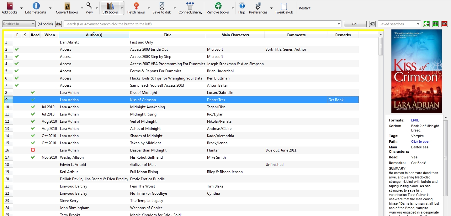 Inserted an empty book added the Author and Title. With the ISBN, downloaded metadata and cover. Also have a custom column entitled "Comments". In 'comments' entered 'Get Book' as a reminder.