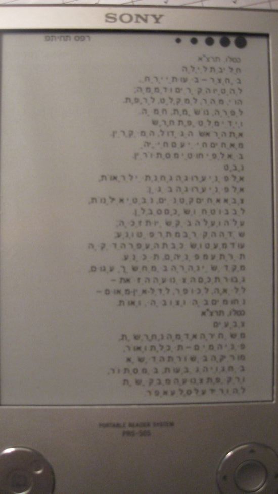 ![]() PocketBook works great and support Hebrew properly as long as you use the FBReader application (and not the default ADE...). You can see Kacir's screen captures in his previous post. Last edited by carmelra; 11-19-2010 at 02:15 PM. |