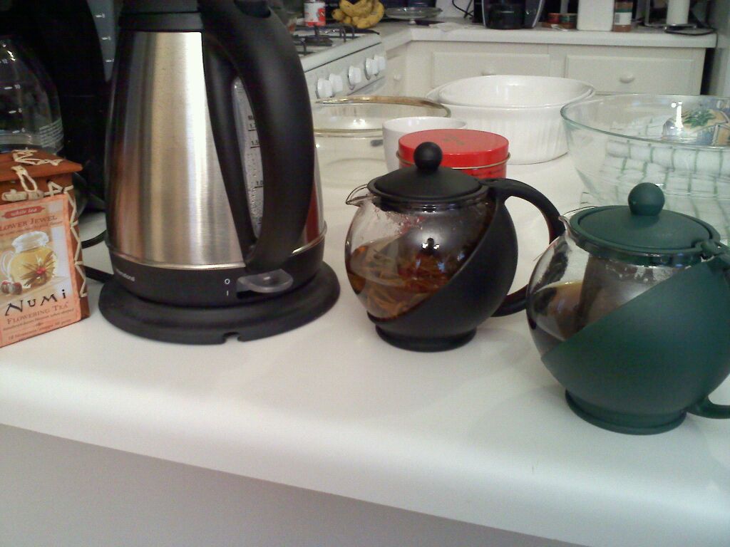 I had fun taking my tea(s) and teapot to Thanksgiving dinner. My nephew's wife had a teapot just like mine, so I took a pic because they looked so cute together. We had a little tea break a couple of hours after dinner, and tried a few.
