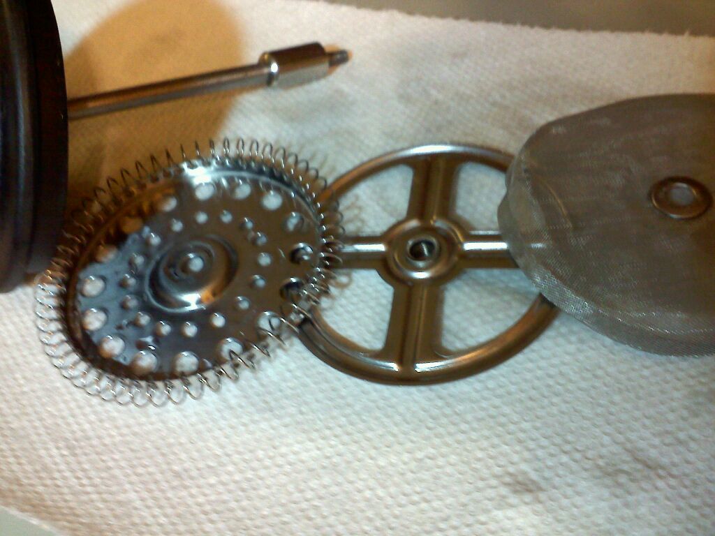 Amazing! There must have been something in the air yesterday. I was looking at a French Press at Starbucks yesterday afternoon. (While their tea is nothing to write home about, I've become addicted to their Chocolate Chunk Cookie!) I guess I just like gadgets so the press grabbed my attention. But looking at it closely I noticed two problems (that were mentioned in Betty's video.) The lid is plastic, and tea really REALLY picks up a foul plastic taste easily, and second, cleaning it would be difficult. The tea oils and tannin coat my mug with a thick brown layer if it doesn't get washed regularly with a powdered cleanser. And as my mug is usually filled all the time, it suffers from not getting washed regularly. By the third day the flavor of my tea is really off, prompting me to give it a good scrubbing. While it will be easy to clean the glass surface of the press, how can one get into the wire mesh of the plunger to clean between the wires? I've tried several different 'soakers' over the years, and nothing seems to do the job well enough. Bleach removes the color but not the problem, as do denture soaks. Baking soda removes objectionable smells, but not the oils. Only scrubbing with a cleanser gets the job done for me. Betty, Astra, let us know how you folks make out with it. Stitchawl |