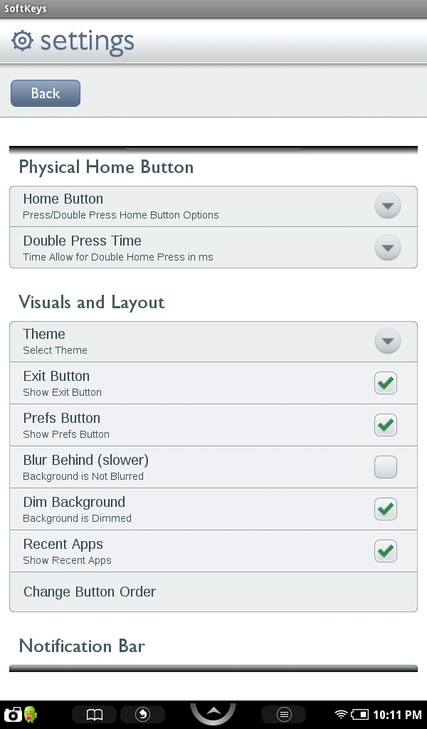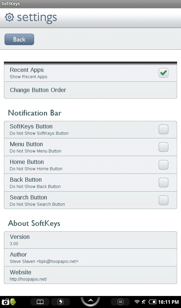 I use the "n" button. Does your version allow that? I had to use the Home Switcher app to set my default home launcher as SoftKeys.