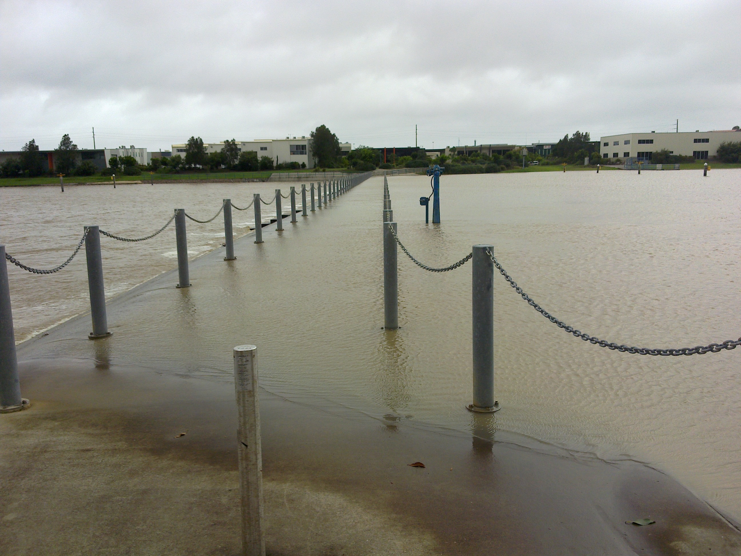 The right of the weir is coming from the river into a closed channel almost the bottom of the low tide. At the other end it is flowing over the weir going out! Confusing huh? I forgot to take a pic. It is going to be very wet over there when the tide comes back in again. We usually ride over this weir, but not today! |
