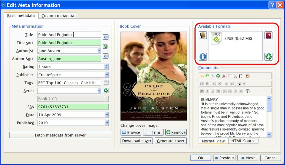 The missing ebooks were in a library that was moved. The .opf files are still in the library, just no ebooks or covers. "Check Library" does not report the ebooks as missing, and it does report extra authors. Looking at the Windows Explorer revealed folders that do not show up in Calibre's lists. I can easily get these ebooks replaced from the publisher. What method would be best for putting the ebooks back into their folders? Should I copy the ebooks to the file folders (Windows Explorer) and then run some sort of maintenance? Or better to "remove" the existing reference to the ebook using Calibre, and start fresh with new "add books"? Is there a detailed user guide for the maintenance functions? Thank you so much for your help. |