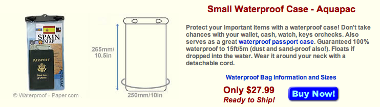 You could try http://www.waterproof-paper.com/ they have a bunch of different waterproof bags, I have a few different sizes and have been whitewater rafting, skiing, hiking, kayaking and even surfing with them all and have never ever had a leak. I would also suggest getting a packet of the Silica Gel Packs, I think there were 5 small packets in the package I bought. We use them here because of the high humidity (80% - 95% all year round). You don't want to start with moisture in you bag before you get near the water.