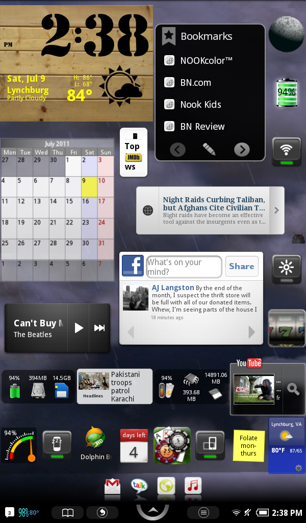 Hi, My questions to anyone is can you distill down for me how to get around the problem of widgets not fitting on the desktop (i.e. it looks like there is room, but it says there is not when I try to put more stuff on the desktop). I am running a rooted nookcolor with zeam launcher. thanks for any help you can provide!!!  David