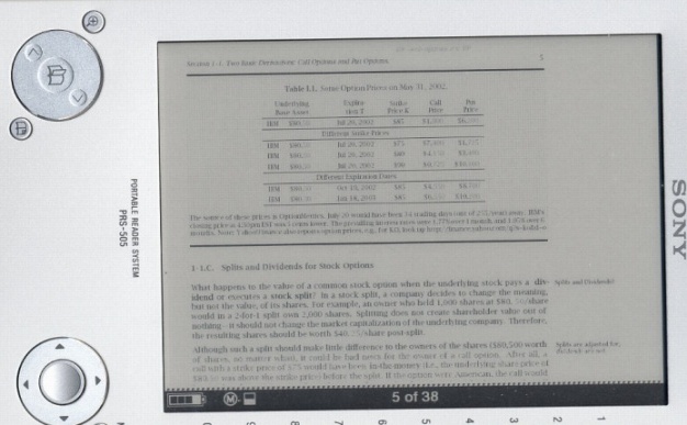 I gave up on PRS 500 because of the absence of pdf support. Now I´ve noticed that there is pdf support on PRS-505. Therefore it is my favorite and I am seriously considering buying the device. but before I send the order I would like to see how are the pdf´s displaiyd. Could somebody do me the favour and make a picture of PRS-505 displying the enclosed pdf? I read a lot of technical stuff and therefore I am affraid that the graphics will not be visible enough on the reader. therefore it would help me a lot to see it in advance. Unfortunatelly Im from europe. therefore have no possiblity to try it by my self in some store in US. Thanx |