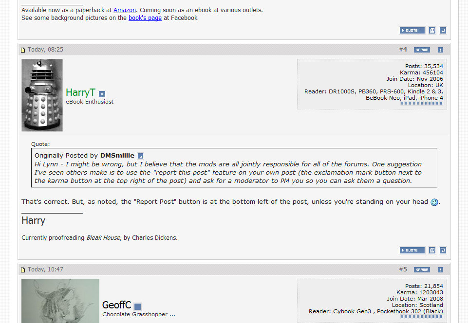![]() lol! No, I'm neither in Oz nor trying out for the world "standing on your head" record. Heh! I totally forgot that when I first registered here, I changed the layout setting from the default. At least, I assume I must have done, since you all seem to have it set differently. ![]() Select Quick Links - Edit Options, then scroll aaaaall the way down to the bit labelled "Postbit Style", select "Modern", then "Save Changes". Attached screenshot shows what the forums, and individual posts, look like at my end. With the Karma and ! buttons top right for each post.
