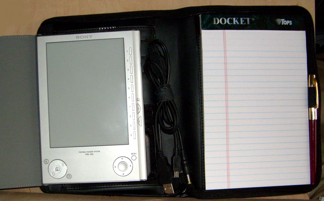 1. I carry my PRS-505 in a case (see pic) that has the reader, extra memory cards, a cable, a pad of paper, and a pen. The pen and paper let me take notes. 2. I divide up my data on memory cards, so I can find things on a reader that lacks directory browsing. One is labeled (via a Brother P-Touch PT-PC) with "Property of Andy... (214)... Math 5300 Notes, Books, etc." This way, I don't have to scroll through 1500 JPEGs of book by the late Maj. Julian S. Hatcher (ret.) to get to my Math 5300 notes. (For those who are curious, Maj. Hatcher was something like a myth buster in the 1920's, working for the Us Army Ordinance Dept. He got strange stories of things blowing up, and tested them to see what was safe, what was iffy, and what would definitely get you killed.) 3. To find my files on the reader, I first know what file type each file it. Recorded lectures are under audio (.MP3). I also take notes, which I scan and store as images (.JPEG) flip through as a recorded lecture is running. I'm going to try taking photos of the notes on the chalk board instead of writing all the time. I save my notes / board photos / anything else I scan under names that put them in a logical order. they are "Math5300-SequenceNumber-Date-Description.jpg." for example, the Fourth page of notes I ever took was "Math5300-0004-Jan14-Notes.jpg" "Math5300" groups everything I scan together. "0004" puts them in the right order. "Jan14" gives me the date, so I can find last Wednesday's quiz. "Notes" tells me that this is notes, as opposed to a syllabus, a quiz, or a homework assignment. I scanned the syllabus, but didn't OCR it. I had too many hand-written notes on it to try OCring it. There are many .m source code files for MatLab that come with the book. for example, in the "Chp06" directory there is a file named "f3.m". the PRS-505 doesn't let me browse through directories to find what I need, so I rename th file to "Math5300-Chp06-f3.txt". All my source code is grouped together beginning with "Math5300-Chp" and then the chapter number. I can see the file name, and the .txt extension convinces the PRS-505 to not only show the file, but even to open it. I'm going to be ripping my text book in the near future, and probably the solutions manual too, so I'll keep everyone updated on how that goes. 4. The cable lets me plug in to any PC to charge, or to get access to my source code files. Andy |