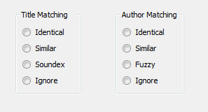 Yeah I was thinking of just boxing the node to ensure it is visible, no searches. In a similar way to what my user category plugin does. So it would be a call to "self.gui.tags_view.model().find_item_node()" then "show_item_at_path()" or something like that. All settings are persisted in the config file as soon as the user clicks ok in the dialog so yes everything is "remembered". Sounds like we agree the user needs an option to disable the tag browser integration. It is just how that would interoperate with changes to the type of title search that I'm not clear about. The simplest option would be a single checkbox that says "Show the first author in each group in the tag browser". This would take effect regardless of the type of search. The second option would be to name it "Show the first author in the tag browser for ignore title searches". As per the name, doing anything but an author duplicate search would never manipulate the tag browser. The third option would be to offer two checkboxes. One for "ignore title searches" and one for "title searches". We could enable/disable the appropriate checkboxes as the user switches the title match radio buttons so the user knows which is relevant. I can't think of how a setting which changes each time you click a radio button can sucessfully work in combination with a "remembered" setting without the user wondering wtf is going on? ![]() What did you think of the soundex - shall we let the user tune it with spinboxes or not? |