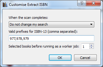 There seems to be several different questions related to this floating around between the various posts. As looking at what books in your library that do not have an isbn and that you haven't scanned as yet is a totally different requirement from books that you just scanned but could get no isbn from. So until I see some clarity on what it is you are trying to achieve I am not going to change the current behaviour. My usage of extract isbn is pretty simple as I just add a bunch of books, select them and extract then run download metadata. I don't get hung up on having an exact value from the book, to me it is just a tool to increase the chances of metadata download picking the right book. So if extract isbn fails I don't care so long as title author search gives me the right metadata result. And if that fails then I use my goodread sync plugin for it's link book feature to search Goodreads website for a more useful edition, drag drop the URL back onto the linked book dialog and have that plugin configured to overwrite the isbn. So then I can just fire the metadata download again. Quote: