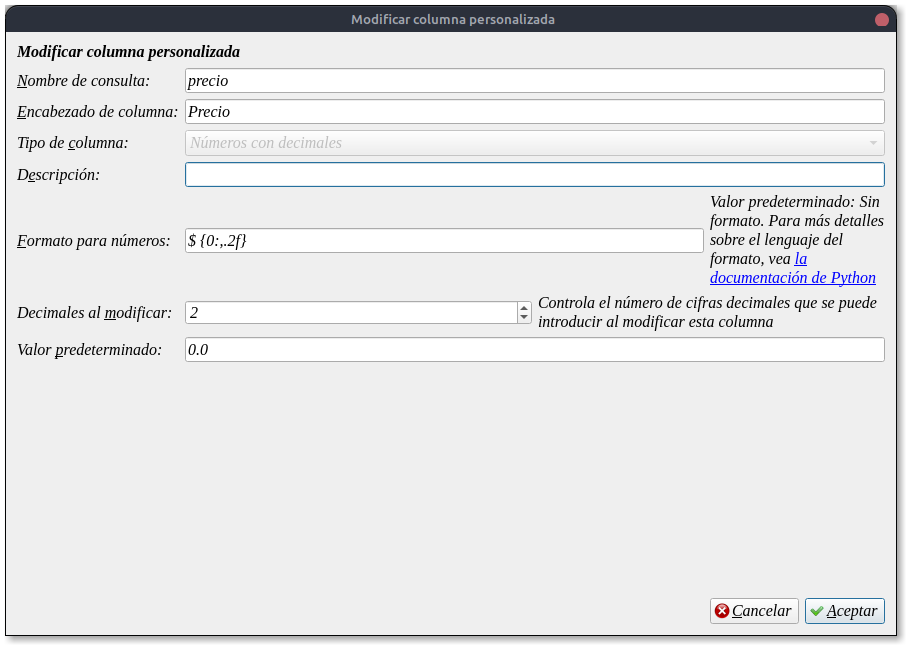 I would like it formatted with a dollar sign, 2 decimal places and right aligned. It won't be used for sorting or searching, I'd just like it to look nice. I'd be just as happy using a text-based column if someone can help with setting it up to be right aligned (if that's possible). Any help would be appreciated. Oh, and I'm using calibre 0.8.5 on vista. Thanks! |