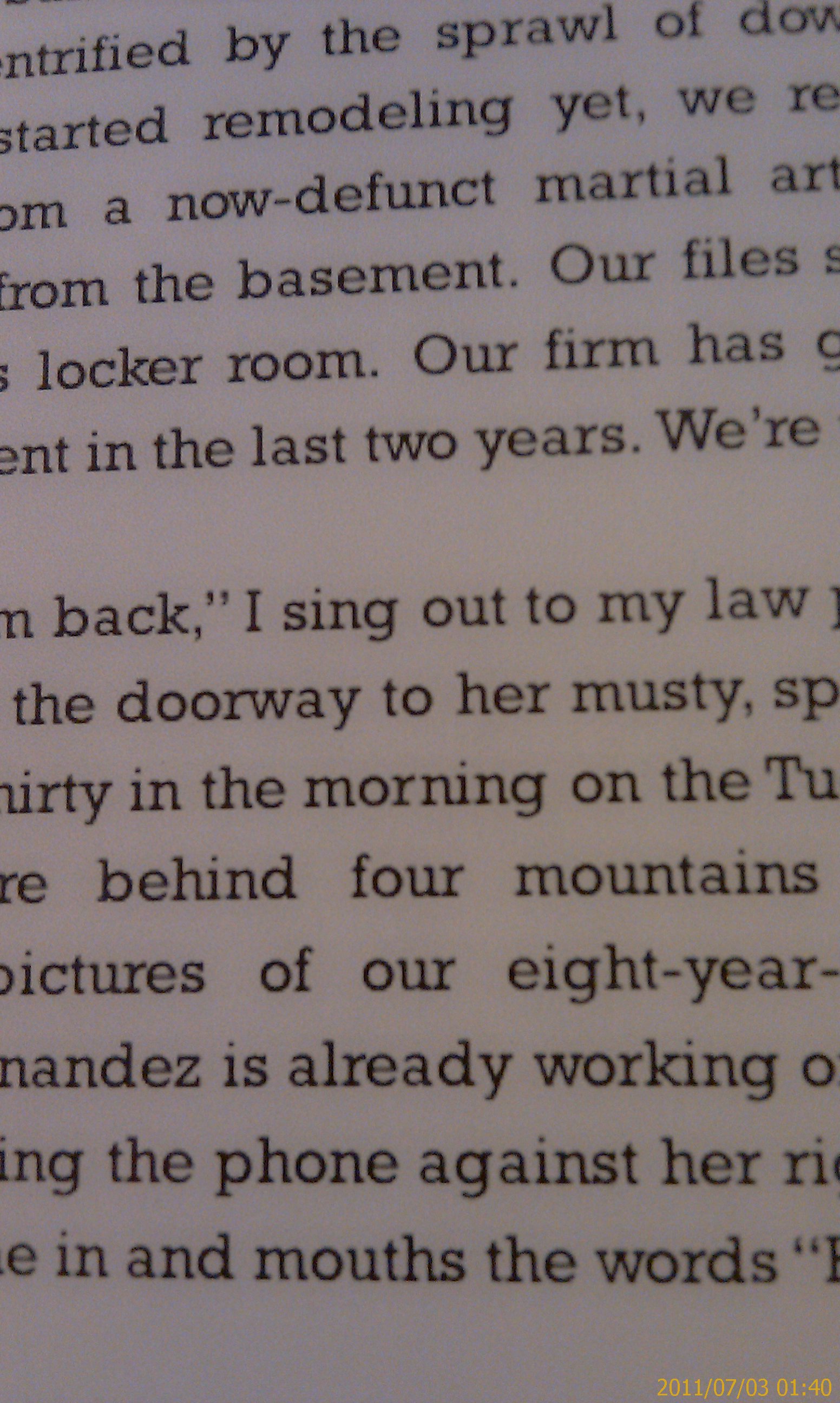 Home screen looks better in person. When looking at the videos I kept thinking it was too plain (compared to NOOK). At first glance one may prefer the NOOK's home screen, but after using the NOOK many don't care for it, and avoid it. While I was typing this, it went into sleep mode. A book cover is displayed with the percentage read underneath. The image doesn't take up the full screen. I saw a post in the Kobo forum requesting a bigger image. Maybe we'll see this change. The Kobo wins hands down for rendering text in the most eye pleasing manner. The latest update propels them to the forefront. it's unbelievable how you have granular control over margins, line spacing, and font size. The Kobo has spacing between paragraphs, which I thought would be a negative. You don't sacrifice word count because you can fine tune line spacing and margins to a greater degree than the NOOK. I've attached pictures comparing the same book with same font style (Amasis). The margins on both are set to the smallest setting. This book on the Kobo is much more visually appealing to me. Last edited by SCION; 07-03-2011 at 12:12 AM. |