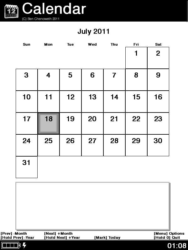 Calendar updates pushed to apps repository. This has been tested on my 600 and it looks good. Changes are: Improved layout and event icons; added "Anniversary"; increased event font size; changed event file-format; non-Touch cursor now moves. Note, in particular, that the save file format has been changed. If you have a save file already, you need to edit it so that it looks like the following: Code: