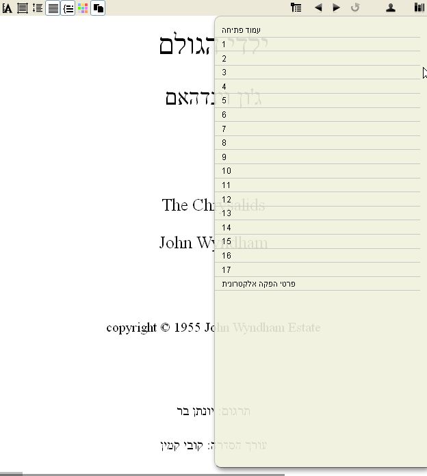 I tried many online conversion tools as well as the Calibre software. I managed to align the pargraphs to the right adding 'direction:rtl;' in the CSS file but the letters itself are still in a wrong direction. No idea what to do... Can anyone here help me please? Thanks ![]() Oren |