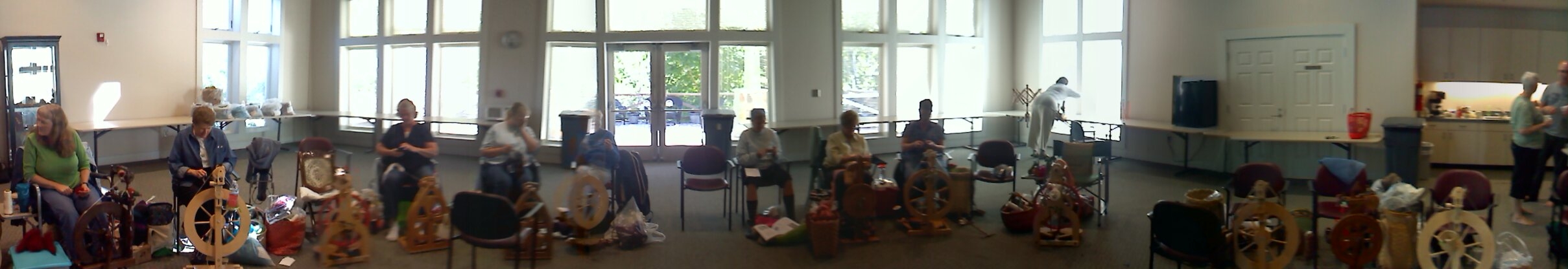 Drinking black coffee and trying to wake up. I had one of those rare mornings of sleeping late. (Well, late-ish.) I spent the weekend at my handspinners' group retreat, held about an hour east of the city at a lodge/wildlife center. I did a lot of laughing and a lot of walking, and apparently both of those things have exhausted me!