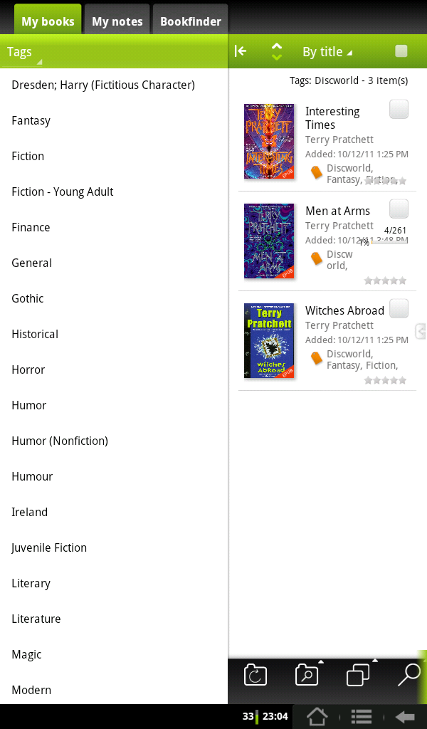 PS: Thanks for the tip about changing the dpi. I used lcd density from the market to increase mine from 160 to 180 and Mantano actually looks better. The sorting panel no longer takes up half the screen space in portrait mode. |