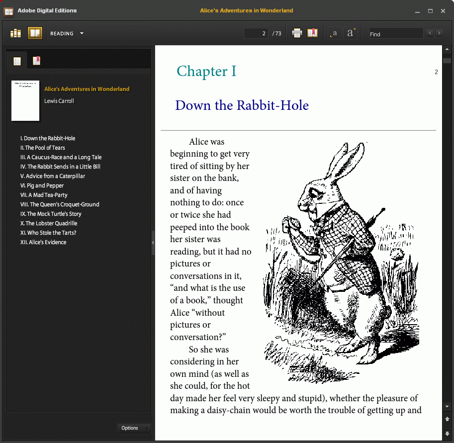 MobiPocket Reader did better on Red Alert, another Adobe sample ebook. However, Digital Editions and MobiPocket Reader display the chapter title in different colors. Both MobiPocket Reader and FBReader fail to produce a TOC from the toc.ncx file for both ebooks. When I tried mobigen (rather than MobiPocket Reader) the console messages indicate that the toc.ncx file is read, but no TOC was produced. MobiPocket Reader failed to convert the only epub example I have with SVG graphics, but it is seriously non-conforming and so this might not have been due to the SVG content. |