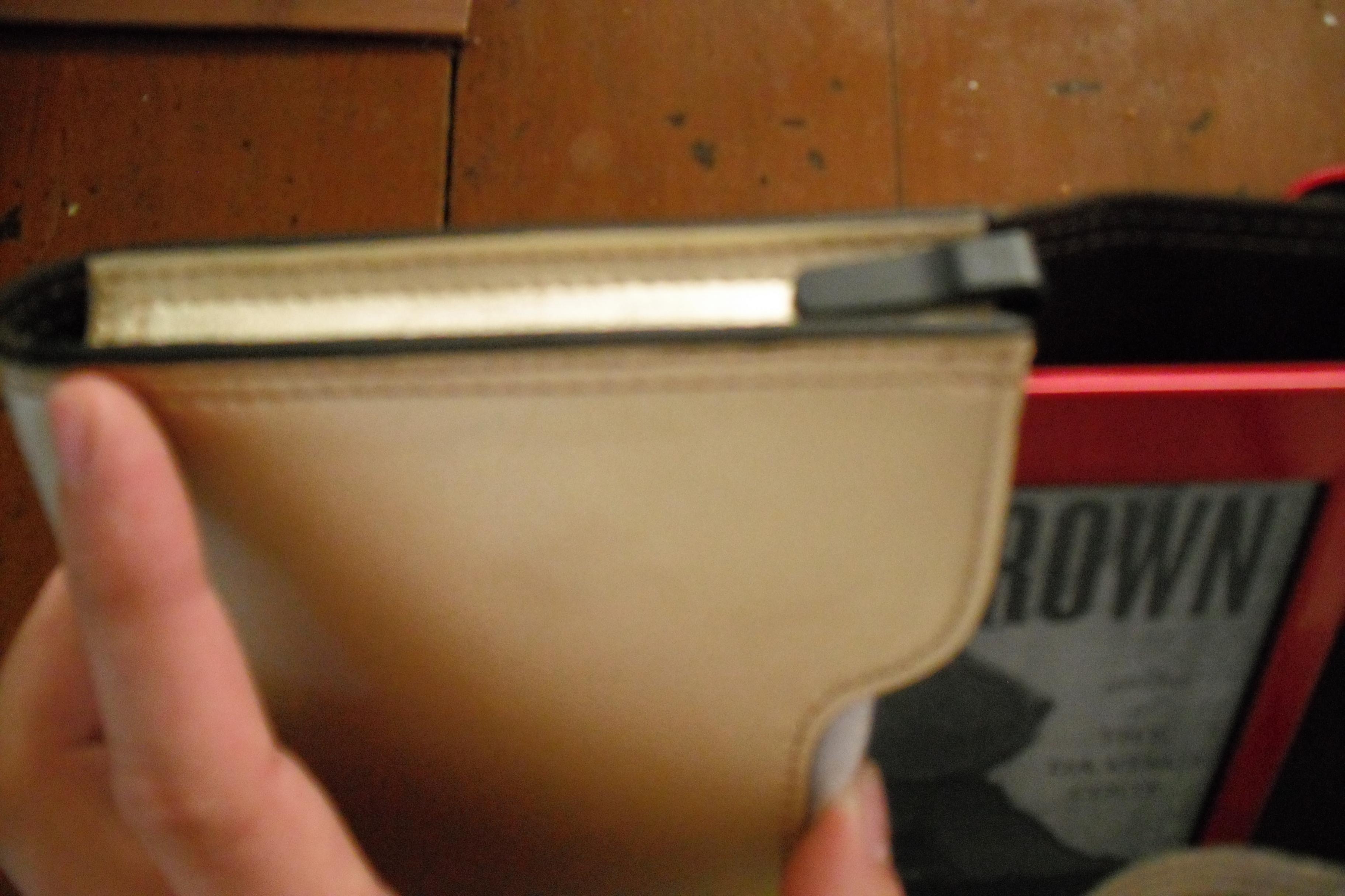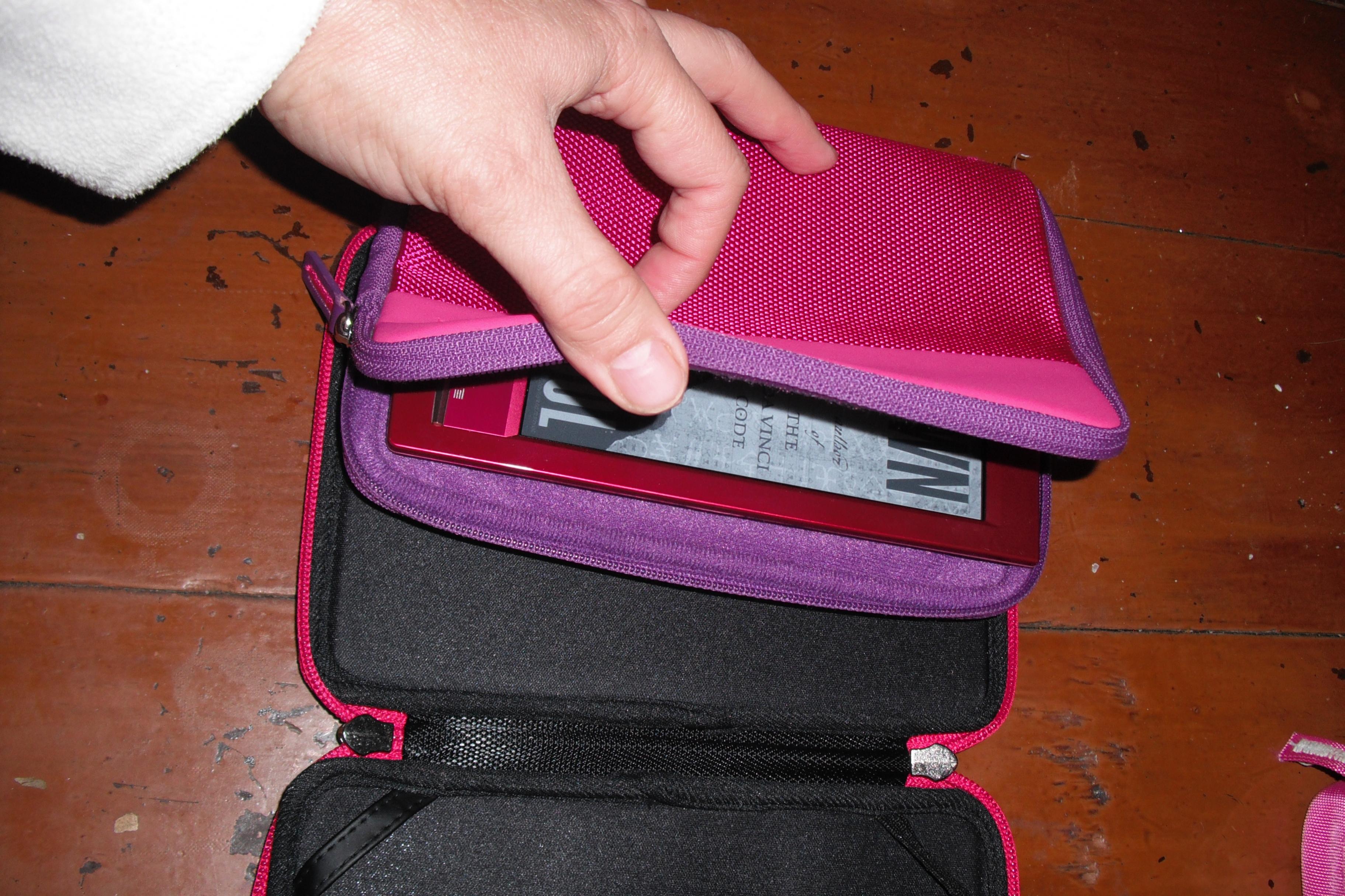 I received a red T1 in the mail from Sony about a week ago. I am enjoying all of the new features - some of which I will use. I'm still going to surf the internet on my 24 inch monitor. I've run into the dictionary thing a couple of times and oddly missing text. I turned the page in the middle of a sentence and the next page was at the beginning of a paragraph??? I reduced the font size and the missing text was there. When I enlarged the font again the text was missing again. Odd The feature that I hadn't heard about and love the most is the setting that lets me choose what font size ALL of my books open in. Until now all books had opened in a tinsy tiny font that I had to immediately change. OK, on to the purpose of this post. I had to find a home for my new baby. Being a nekid reader I was looking for cases, not covers. Here are 3 that I've come up with that all seem to work quite nicely. The M Edge Latitude Jacket for Kobo Touch and Kindle Touch is new $25 from Walmart: Seems to do the trick and notice how nicely the colors match. I will use it for travel because for everyday the little straps are little annoying. The bottom 2 are leatherlike and the top 2 are elastic. The Sony zippered sleeve is the home for my sister's pink 350 but holds the T1 nicely. It's not quite as rigid as the M Edge but seems to do the job. Sony.com currently has this one in blue for $12.99 in the outlet store. The gold Case Logic case was the home for my 600 which is currently being used by a dear friend. It has the magnetic closure and I like it for everyday use. I also found that the stylus slides into the corned and hooks over the edge nicely. Since my gold case is being used elsewhere I had to find a replacement and found it at Amazon for $5.99. I've attached several pictures. I hope this helps if you're looking for a case. |