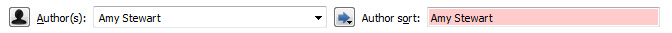 If I now go in to the "Master override" (i.e. right click authors, Manage Authors), this now appears correct. Amy Stewart has a sort of Stewart, Amy. However, if I right click on the title, and select the book, the sort order is still wrong, showing Amy Stewart as per the picture in my second post. ![]() See images. MasterSort shows there is no sort author of Amy Stewart MasterSort2 shows Stewart, Amy. Sort shows the author is still being sorted by Amy Stewart. AuthorError shows what I see when I right click on the book. ![]() Any ideas? Edited to add: If I change this author by right clicking on the book, changing the sort to Stewart, Amy, and clicking OK, this fixes it. If I then use the "Master override", this doesn't change it back to Amy Stewart, it stays as Stewart, Amy. Last edited by sparrowdclxvi; 01-05-2012 at 06:13 AM. Reason: More info |