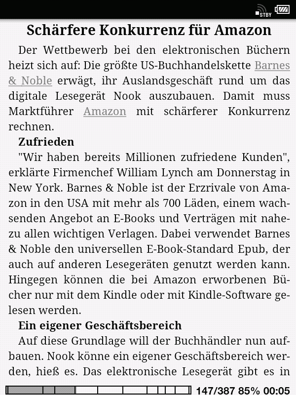 Many thanks for taking the time to experiment and take pictures FBReader and MoonReader don't really come very close, do they?@tayseidel, Regarding CoolReader, if I was to create a completely different epub which contained the same sorts of visual styles, but used totally different css class names, would your existing CoolReader config work on both epubs or would you need to totally tweak the config for the second one? @vishcompany, Regarding Calibre News. I'm assuming a typical News epub is very reliant on hyperlinks to jump from section to section. Do these work correctly in the other apps? |