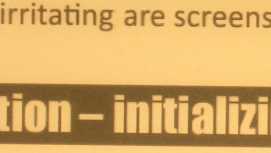 It's a separate issue what something looks like on both screens at the same physical size, but since you're so interested here you are. I made the text the same physical size on the Sony and the jetBook (or as close as I could), and kept the camera distance and zoom setting the same. Click to zoom in. Why I bought the jetBook is to read a PDF a page at a time without having to zoom in. And it looks like I'm able to do that, although I might still have to margin cut some documents. Andrew PS I suspect you're wrong about the sub-pixel rendering when it's pure black text on a pure white background (in the source document that is) but I have no way of testing it (yet). Last edited by andyh2000; 02-06-2012 at 04:59 PM. |
