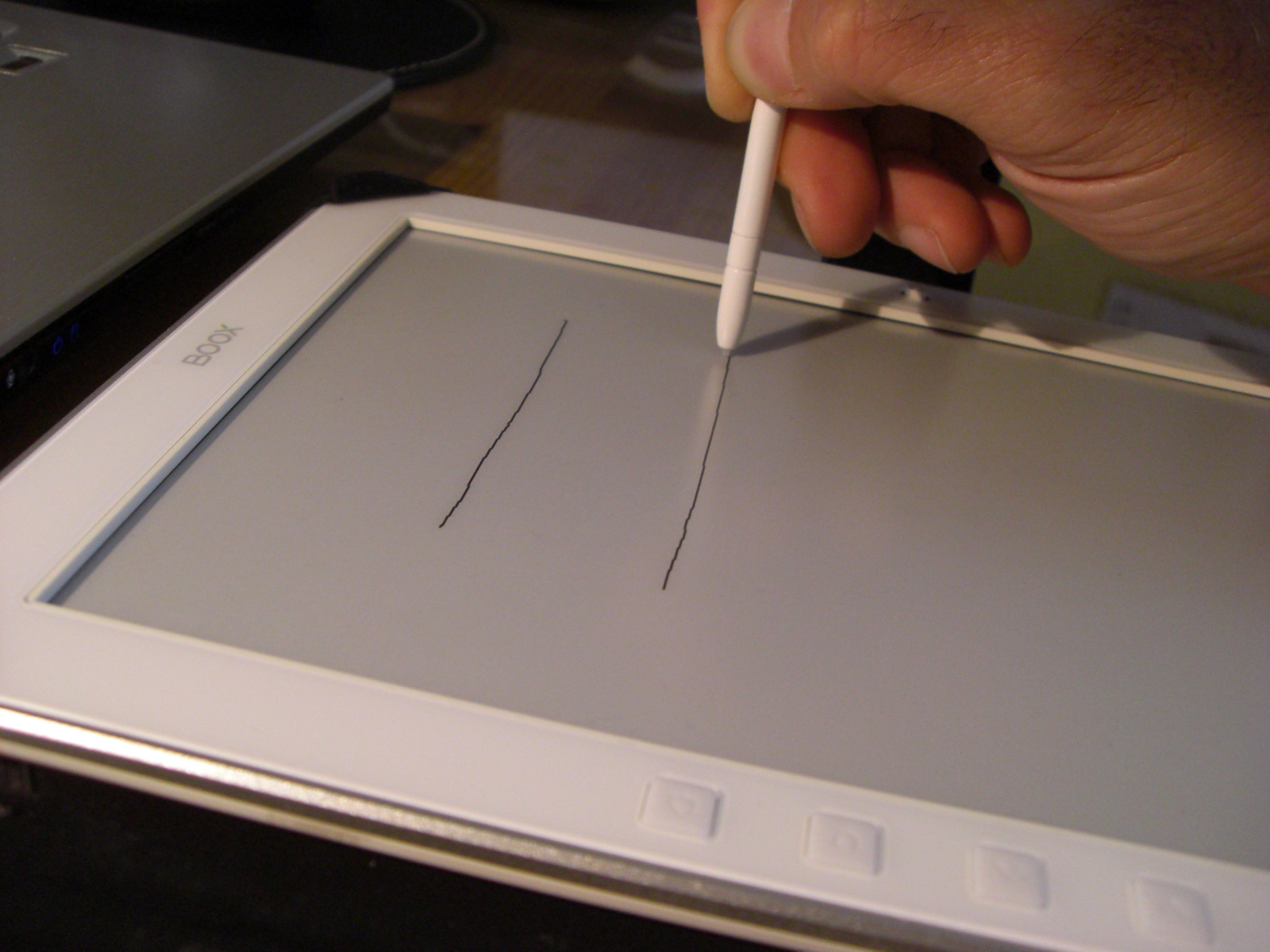 Yes, I have tested everything. See the pictures... I will try to explain it. My apologize if my english is not good enough. See the difference between the lines. At the top of the page, the pencil tip is just where the line is. But when I start moving down the screen, the distance between the tip and the line increases. And... only writing horizontal lines, not with vertical ones. RAFA |