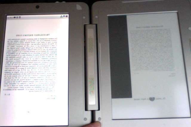 (the second picture is from coolreader, where the text does not fit completely on the lcd side, but fills entirely the e-ink side ...)