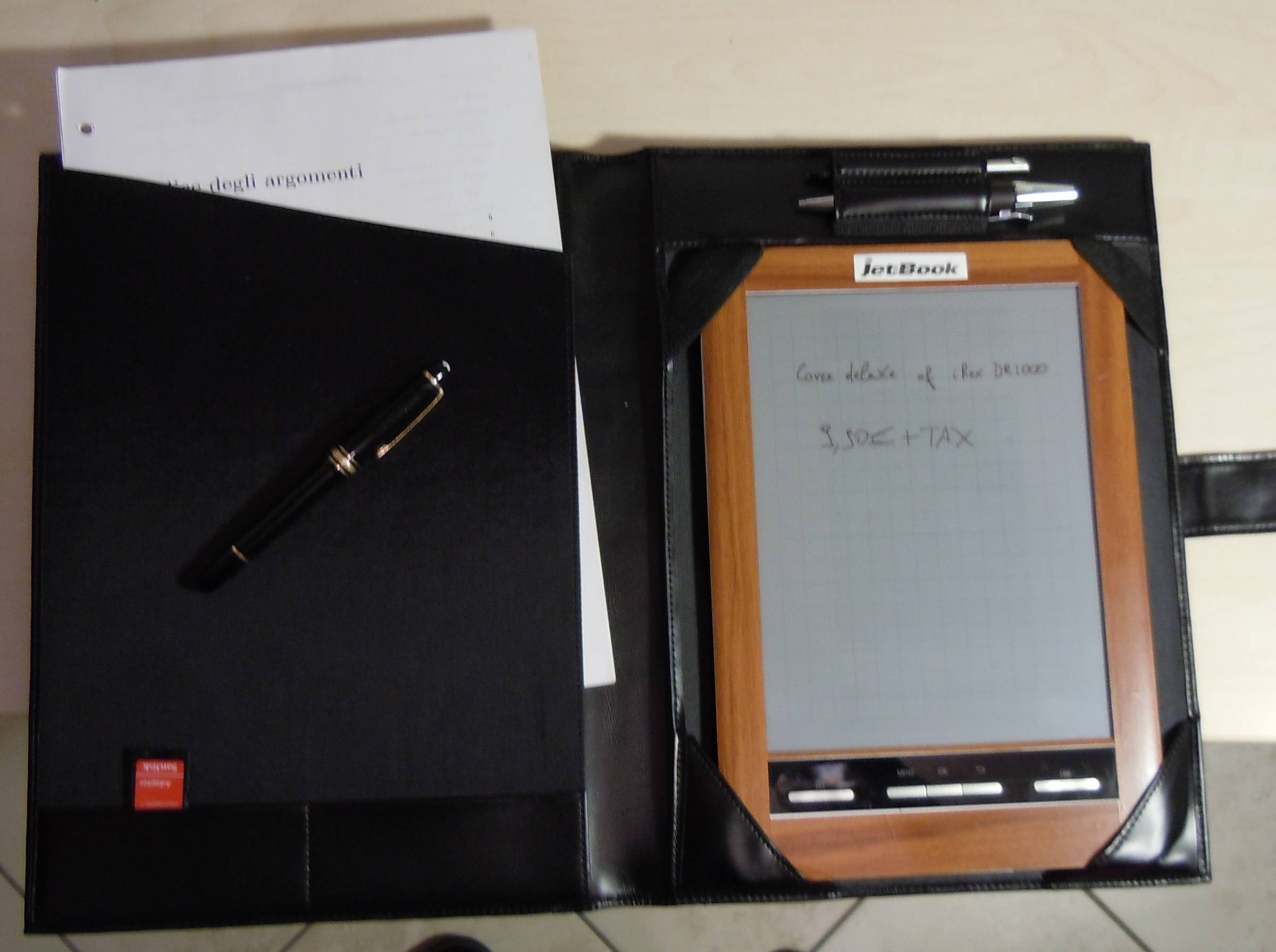 The "DR1000 Luxury Cover Black" and the smaller "DR1000 Flip-Over Cover Black/Tan". DR1000 was an 10' ereader (the biggest I ever seen) and its covers fits well for my Jetbook Color. You don't believe me, don't you? Hey! see attached photo and change your minds ![]() "DR1000 Luxury Cover Black" (9.90 E + tax): "DR1000 Flip-Over Cover Black/Tan" (9.90 E + tax) P.s: I payed them 9.9Euro + Tax each one but the quality is very very high |