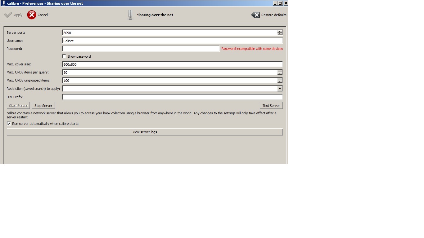 I added a screenshot of the Calibre server menu in the original post with the instructions. To get there: