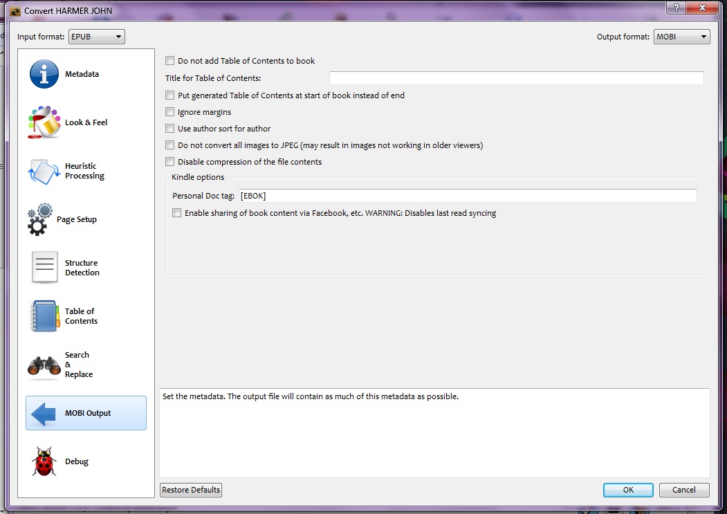 Using Harmer John epub - converting epub to mobi,