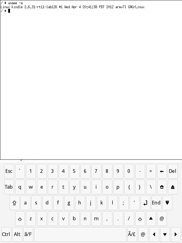 Inspired by other thread in this forum I built xterm and matchbox-keyboard for Kindle Touch. I prepared package for GUI Launcher. You can download it on this site. I hope the package will work for you. If not please let me know. I could have spoiled something, as I am new to Kindles. It should work on Kindle Touch with firmware 5.1.0. For now, keyboard layout is very basic and not very comfortable. I will work on it when I have some free time. |