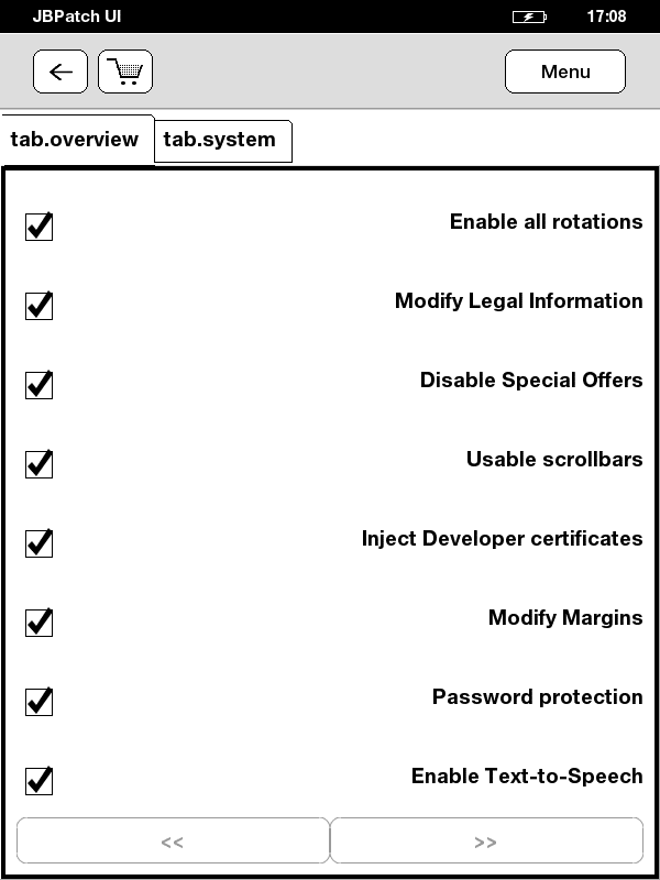 Hello everyone,this is my first post at mobileread.First thanks to ixtab for his superb work on jbpatcher and font hack.I have tried margins patch and have set the values of reader.content.leftMargin and reader.content.rightMargin to 0 for fullscreen pdfs.I have tried the sample pdfs and none of them display fullscreen i.e none of them have black borders that reach the edges.Might be my fault.I have already added an entry at config.txt.It goes something like this: