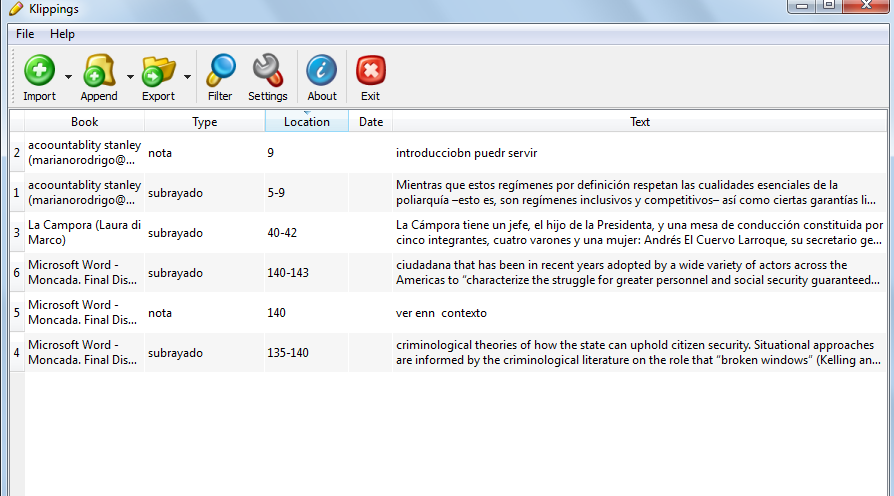 Import> "Import "My Clippings.txt" without bookmarks (KTouch, ES)"
