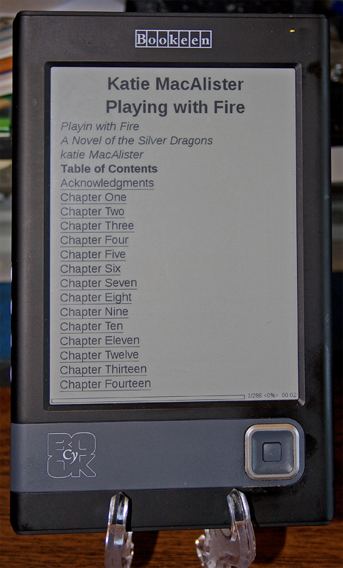 Look, it's *ALPHA*. So don't expect that it's gonna have all the featurettes that you'll see on Windows using FBReader and the like, but you can now at least *see* OpenInkpot, Madshelf and FBReader running on the Cybook. From the SD card. Hooray Ondrej!!! I must say that the 8/21/2008 alpha release doesn't actually "recognize" the navigation control (what some call the d-pad) as a navigation control under Madshelf. Instead, you have to press the left-side and right-side keys to mimic the Jinke V3's "1" - "6" numeric keys as well as using the power on/off key as the "Esc" key. Which means that to turn off OI from within Madshelf, you must use the central button on the navigation control to bring up the menu, press the "-" key to select "Scripts" from that menu and then press "Music" to select "Shutdown OpenInkpot", but it works and you can open and read PRC, PDB and other format ebooks (non-DRM'd of course) using FBReader. The first photo below shows Madshelf and the second shows FBReader. Yay! Derek |
