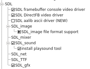save it. In this next section you can choose to include it in the packages directories. I choose LIBRARIES: GRAPHICS because I think that is the best fit. nano /home/you/GIT/buildroot/package/Config.in add source "package/aalib/Config.in" in the relevant section (see pictures for my example) Adding Support in existing BR applications: In this next section we are optionally adding support for the new package in existing packages like so: (adding support in SDL) nano /home/you/GIT/buildroot/package/sdl/Config.in Spoiler: