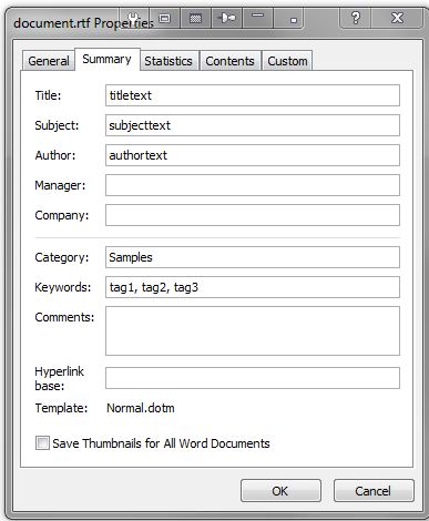 Whats more these conventions are known to and used by Calibre - in respect of Author and Title. When I add an RTF (or a PDF) to Calibre it will extract the Title and Author from the metadata. Note : I have Read metadata from file contents rather than file name checked, I prefer to retain the original source file names. When I save an RTF to disk or do an RTF->RTF conversion the Author will only be updated if the Author field in the current file is empty - which is exactly the same as PDF's. I get around the problem by clearing Author field in the RTF and PDF files before adding it to Calibre - but I often forget. I also make errors entering Author names, which are often foreign names, from languages that use non Latin scripts - so error detection is often slow - i.e. months later. I've reported the problem @ launchpad The 'it doesn't matter because its in the Calibre database' argument doesn't wash, I want the metadata to be available to the content indexing IFilters. BR Last edited by BetterRed; 11-06-2012 at 09:21 PM. |