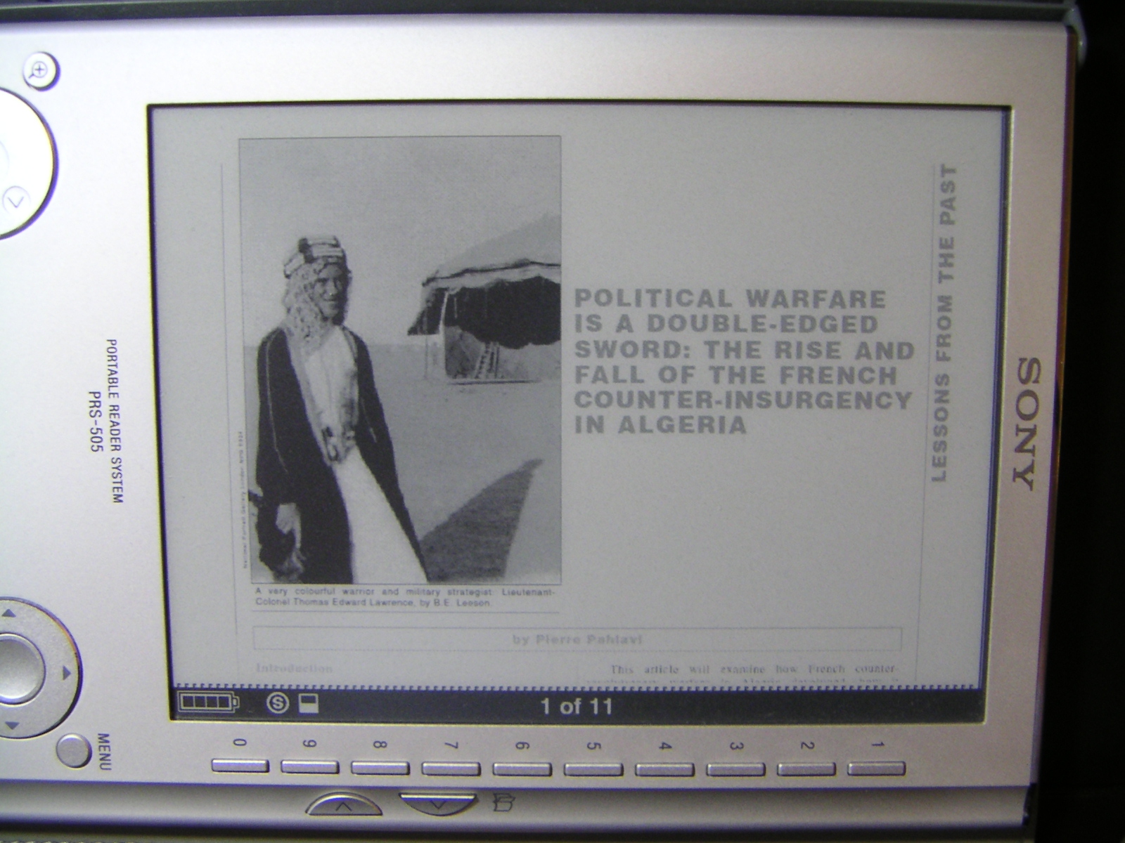 OK, attached is a publicly available PDF of the sort that I'd like to be able to read on a reader. Can anyone show me what this looks like on a Sony reader screen?