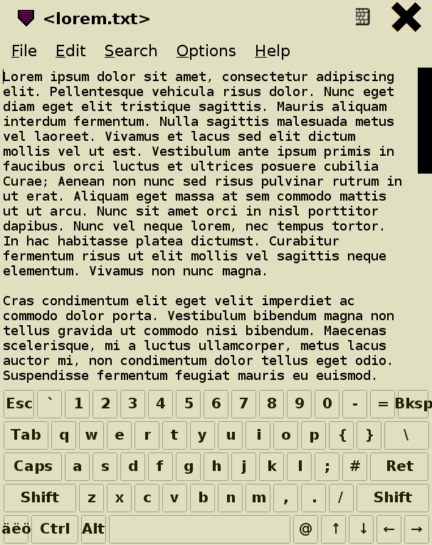The source code for maxwell is open source. http://sourceforge.net/projects/maxwellwp/ I didn't have a play but it looks to need motif/lesstif someone could maybe tweak that one onto the pile of "best editors" I think more and more that combo OS solution is not such a bad thing. Launching debian from the Extensions menu is effortless and solid (if a bit noisy on the stdout) the overhead and initial management are a PITA but selecting a couple of solid applications would be decent interim solution while porting efforts ensue. I tested a few likely candidates via the armels and could probably get much of this stuff into life natively if it was so required now I have had a chance to play around more with matchbox etc under debian. Will attach some screeenies of a few apps that are low hanging fruit in action. Cheers. |
