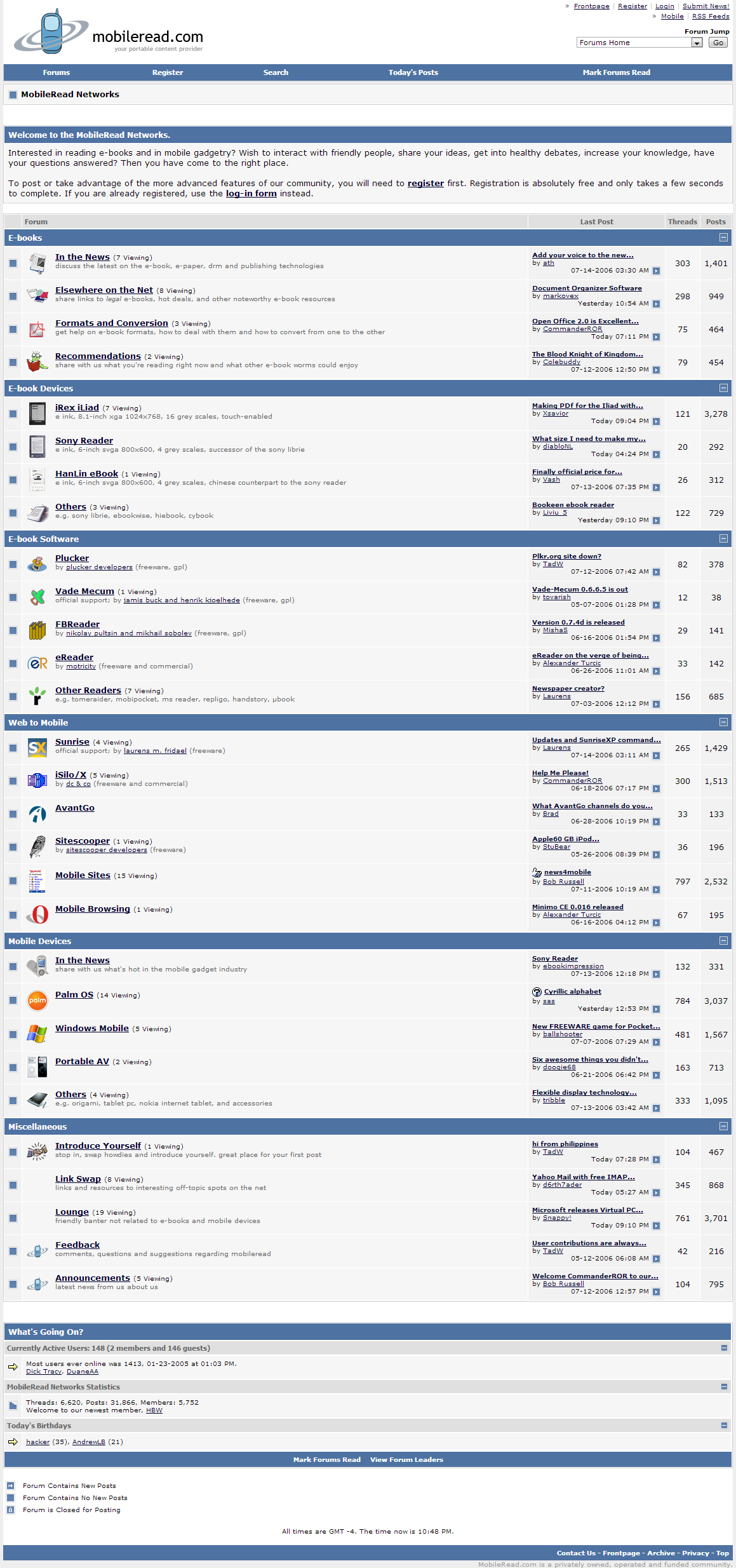 (screenshots of "former" MobileRead courtesy archive.org's Wayback Machine)