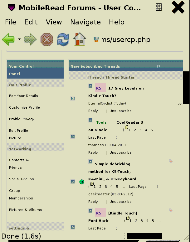 yeah, it really still would be nice to have an option for the native browser to support it but meh. Fun to play with. OT: I did get vlc player running very nicely - with surprisingly great eink management, would have to port it to get the sound going I would imagine : ) playing with games right now. finding out what runs decently before wasting effort on a port. Happy fun. | |