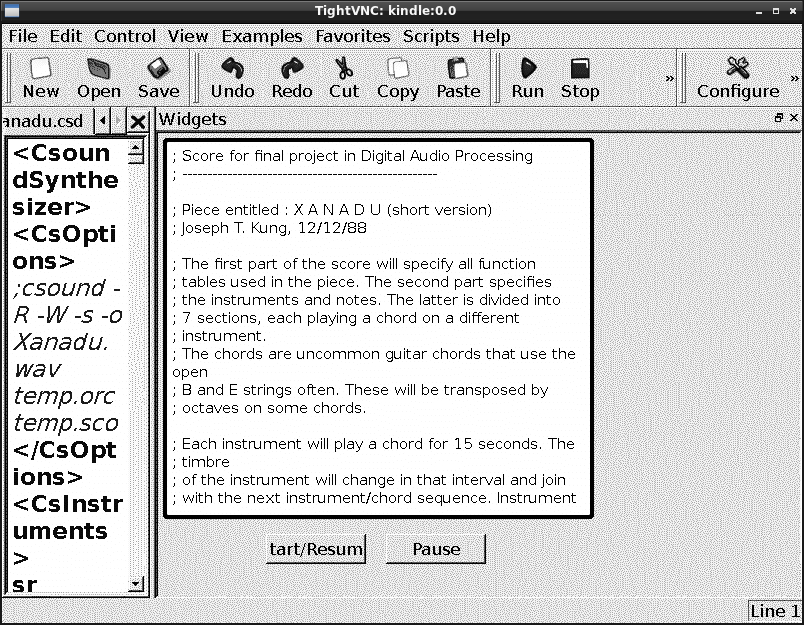 Short answer. it works - barely on a 3 - and not too bad on a 5 ![]() Going to run a few procedural works through csound on the kindle now. I will attach the outputs here Kindle Studio - World First?Places of note: http://www.csounds.com/manual/index.php http://iainmccurdy.org/csound.html http://www.csounds.com/maldonado/orcsco.html http://wiki.laptop.org/go/Csound_tutorials Last edited by twobob; 11-13-2012 at 09:55 PM. |