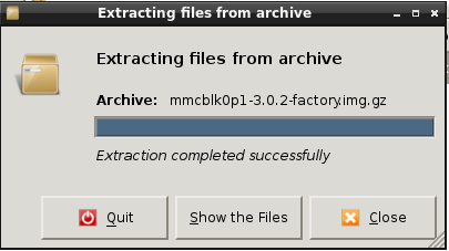 When I unzip the rootfs files for both links: mmcblk0p1-3.0.2 (factory): https://docs.google.com/open?id=0BwJ...jVuM0FXUzd4d00 AND mmcblk0p1-3.0.2 (factory): http://db.tt/iPs8FdNw it remains archived. Will try that still though after renaming. |