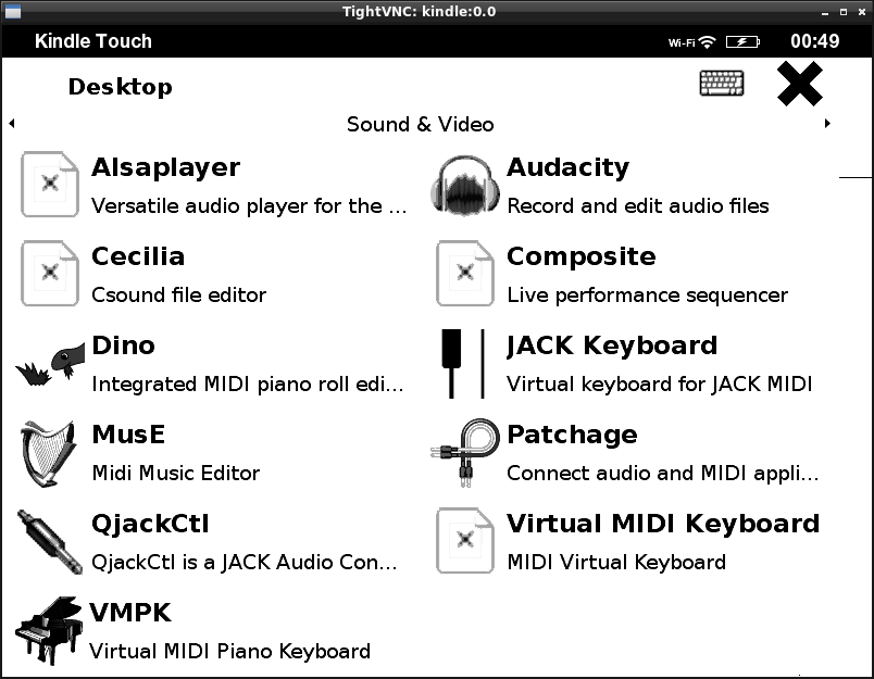 again like I did on the 3 and see about implementing some midi then. I may have a friend who can help with that. Also need to get Jack up. He can probably help with that too, so let's just say WIP. Installed and cruised likely winners going forward for the virtual keys as and when we breathe some life into the sound support. which was surprisingly solid. Kudos Lab126. EDIT: Erk. That config is a bit stern. ho hum. I'll look into dual configs streaming or something. Last edited by twobob; 11-13-2012 at 09:12 PM. |