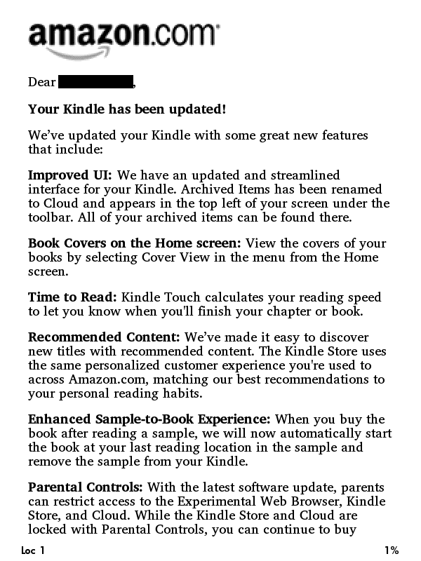 I recently updated my Kindle Touch to 5.3.2. Everything works fine, except the software update letter that never downloaded. I stopped the download because I thought the letter would be available in my Cloud, but it isn't there. Does the letter have any important information? Thanks for any help.