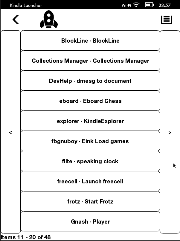 | application launcher for kindle 3 (kite) | fbdev | Kindle Developer's Corner | 21 | 05-04-2012 07:02 PM |
