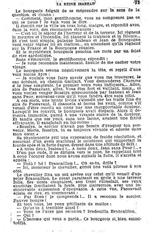 1. Je ne connais pas le logiciel de conversion que tu a utilisé, mais je ne pense pas que le problème soit lié à la langue du pdf. Ce sont plutôt les premières pages (ref Gallica) qui, à mon avis, empêchent la conversion. Avec des infos plus précises sur ton logiciel de conversion, tu peux jeter un coup d'oeil ici et créer un nouveau post: https://www.mobileread.com/forums/forumdisplay.php?f=184 2. Le scan de La reine Isabeau est de très mauvaise qualité tu devras donc mettre des dizaines d'heures à la révision du texte et si le français n'est pas ta langue maternelle, ce sera encore plus difficile. 3. La conversion des pdf, même de bonne qualité, n'est pas donnée d'avance: il y a toujours du travail à faire. 4. Si tu réussis la conversion il faudra ensuite que tu utilises un logiciel de nettoyage: Scan Tailor (freeware) est le meilleur choix. Suggestion: comme tu es en France, pourquoi ne pas acheter le livre (en format poche) et le scanner correctement? Ce serait plus rapide que d'utiliser le pdf de Gallica et simplifierait énormément ta révision. |